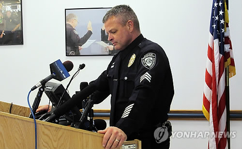 | △ "등에 맞은 총알은 없었다" (AP=연합뉴스) 미국 워싱턴주 케너윅 경찰서의 켄 래틴 경사가 지난 10일 파스코에서 경찰에 사살된 멕시코 출신 노숙인 안토니오 잠브라노 몬테스 사건에 대한 진상조사 결과를 25일(현지시간) 기자들에게 밝히고 있다. 래틴 경사는 당시 자동차를 향해 돌을 던진 몬테스를 추격하는 과정에서 경찰관 3명이 17발의 총알을 쏴 이 중 여러발이 몬테스에 맞았으나 등에 맞은 것은 없다고 말했다. marshal@yna.co.kr Kennewick Police Sgt. Ken Lattin talks to reporters, Wednesday, Feb. 25, 2015 about the investigation of the fatal police shooting of Antonio Zambrano-Montes, who was unarmed, in nearby Pasco, Wash., on Feb. 10, 2015. Lattin said the three officers involved in the death fired 17 shots, including several that struck Zambrano-Montes, but no shots hit him in the back. (AP Photo/Nicholas K. Geranios) |