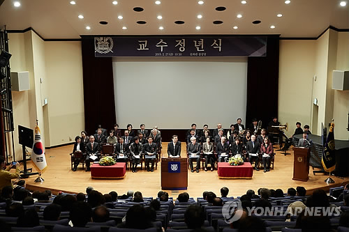 | △ 서울대 교수정년식…이준구 교수 등 21명 퇴임 (서울=연합뉴스) 고은지 기자 = 27일 서울대 관악캠퍼스에서 '교수 정년식'이 열리고 있다. 이날 '쓴소리 경제학자' 경제학부 이준구 교수, '국내 군사회학 선구자' 사회학과 홍두승 교수, '유럽 복지모델의 세계적 권위자' 사회복지학과 스벤 호트 교수 등 21명이 퇴임했다. 2015.2.27 << 서울대 제공 >> eun@yna.co.kr |