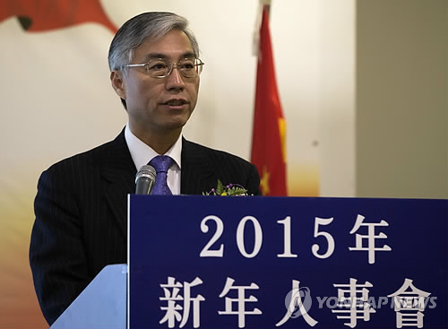 | △ 축사하는 추궈훙(邱國洪) 주한 중국대사 (서울=연합뉴스) 윤동진 기자 = 추궈훙(邱國洪) 주한 중국대사가 27일 오후 서울 중구 밀레니엄 서울 힐튼호텔에서 열린 '2015년 신년인사회'에서 축사를 하고 있다. 2015.2.27 mon@yna.co.kr |