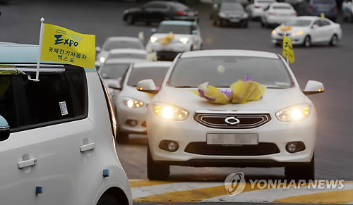 국제전기자동차엑스포 조직위원회의 주관으로 열린 이날 전기차 퍼레이드에는 민간·기업·관광서 보유의 전기차 100대가 참여했다.