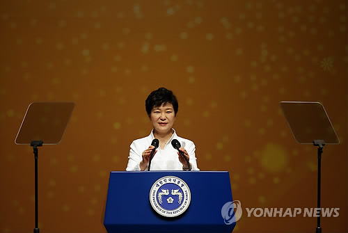 박 대통령은 "정부는 올바른 역사인식에 기초한 21세기 한일 신협력시대를 열어가고자 노력해 왔다"며 "그러나 지리적 이웃국가 임에도 불구하고 과거사를 둘러싼 갈등 때문에 안타깝게도 마음의 거리를 좁히지 못하고 있다"고 지적했다.