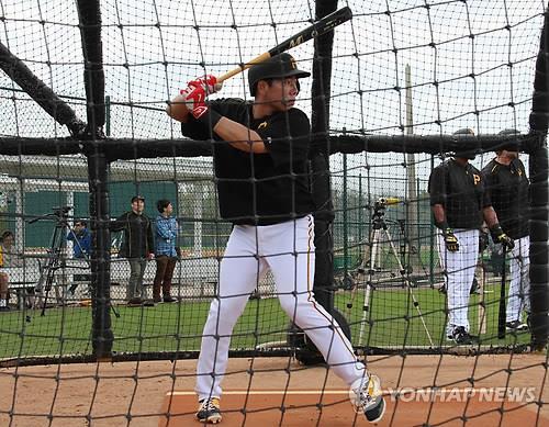 (브래든턴<미국 플로리다주>=연합뉴스) 장현구 특파원 = 미국프로야구 피츠버그 파이리츠에 입단한 한국산 거포 강정호(28)가 첫 실전에서 3번 타자 유격수로 팬들과 만난다.