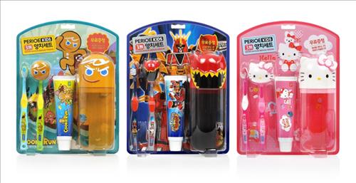 세트는 어린이의 성장단계별로 구강 크기와 손 크기에 맞도록 설계한 칫솔 2개, 저자극 치약, 양치 컵 등으로 구성된다. 가격은 각 6천500원대.