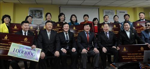 | △ 삼성물산이 시공하는 몽골 샹그릴라 호텔 건설현장이 몽골 노동부가 주관하는 '2014년 몽골 건설안전 최우수 기여 현장상'을 수상했다고 삼성물산이 3일 밝혔다. 사진은 2014 몽골 건설안전 최우수 현장 수상자들의 모습. 앞줄 오른쪽에서 네 번째가 친조릭 몽골 노동부장관, 뒷줄 오른쪽에서 네 번째가 이상수 삼성물산 현장소장이다. |