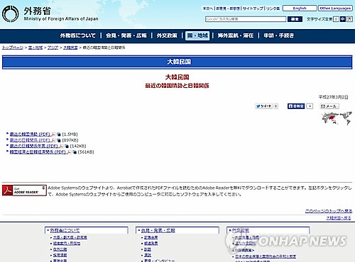 (도쿄·서울=연합뉴스) 조준형 특파원 김효정 기자 = 일본 외무성이 홈페이지의 한국 소개 내용 중 '자유와 민주주의, 시장경제 등의 기본적 가치를 공유한다'는 표현을 삭제했다.