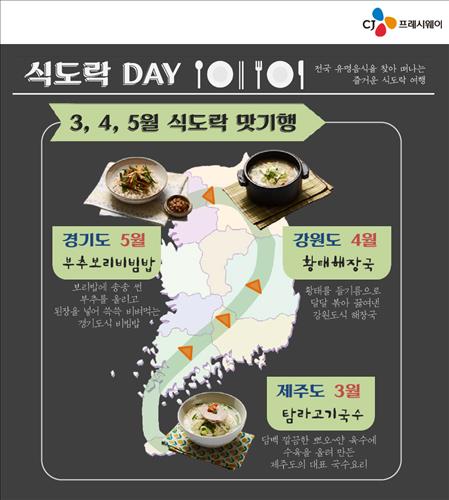 CJ프레시웨이는 매월 하루를 '식도락 데이(day)'로 정해 전국 각지의 유명 음식을 단체급식 메뉴로 제공하는 '식도락 맛기행'을 이달부터 진행한다.