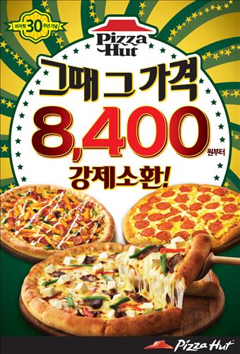 (서울=연합뉴스) 신호경 기자 = 피자헛(www.pizzahut.co.kr)이 일부 제품을 30년전 가격으로 판매하는 '그때 그 가격 강제 소환' 행사를 전국 매장으로 확대한다.