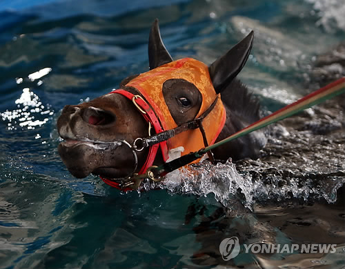 경주마들은 수영으로 뭉친 근육을 풀거나 운동기 질환을 치유할수 있다.