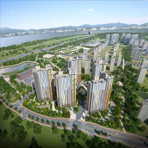 입지가 한강변이어서 일부 가구는 한강을 조망할 수도 있다. 단지 바로 앞에 7만8천여㎡ 크기의 근린공원도 조성되고 한강수변공원 등 녹지가 풍부해 쾌적한 주거 환경을 누릴 수 있다고 GS건설은 설명했다.