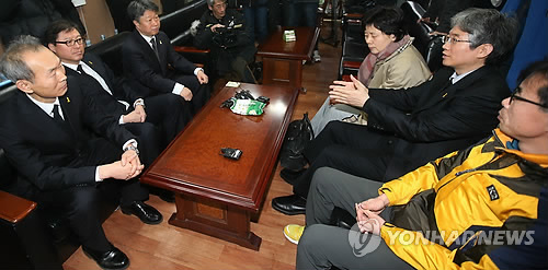 | △ 합동분향소 찾은 세월호 특별조사위 상임위원들 (안산=연합뉴스) 신영근 기자 = 6일 오전 4·16 세월호 참사 특별조사위원회 이석태 위원장(왼쪽)과 상임위원들이 임명장을 받은 후 첫 공식 일정으로 경기도 안산시 단원구 세월호 희생자 정부 합동분향소를 찾아 조문한 뒤 전명선 4·16 가족협의회 대표와 이야기를 나누고 있다. 2015.3.6 drops@yna.co.kr http://blog.yonhapnews.co.kr/geenang |