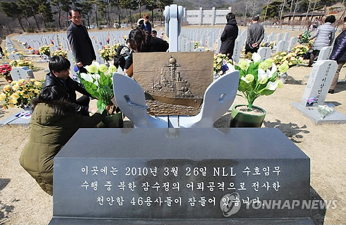 (대전=연합뉴스) 이재림 기자 = 천안함 피격 사건 5주년을 열아흐레 앞둔 7일 국립대전현충원에 '46 용사' 유족이 모였다.