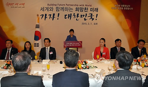 (도하=연합뉴스) 정윤섭 박성민 기자 = 중동 4개국을 순방 중인 박근혜 대통령은 7일 낮(현지시간) 마지막 방문국인 카타르에서 현지 진출 경제인과 오찬 간담회를 하고 이들을 격려했다.