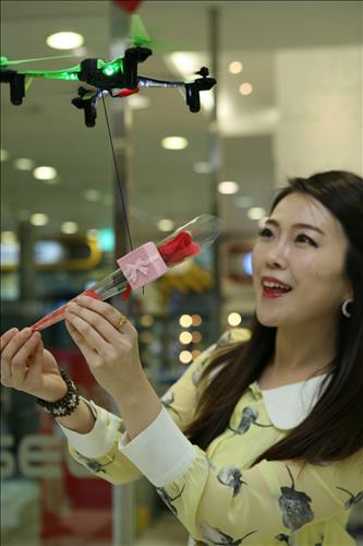 드론 매장 '헬셀'에서는 중국 유명 여배우가 드론으로 프러포즈를 받은 사연을 본뜬 '드론으로 사랑 고백하세요' 행사에 참여할 수 있다. 드론에 작은 꽃과 보석함을 매달고 날려보는 이벤트로 14일까지 매장에서 무료로 드론 강습을 받을 수 있다.