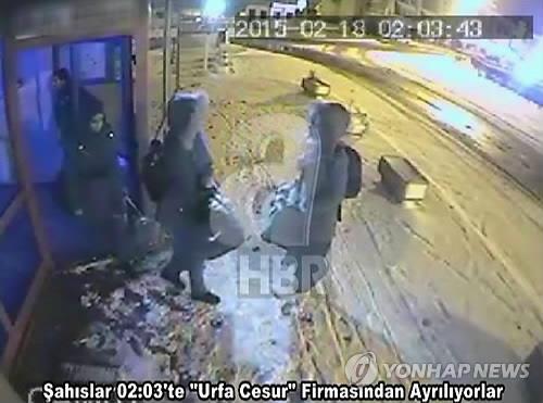 | △ (AP=연합뉴스) 1일(현지시간) 이슬람 극단주의 무장세력 '이슬람국가'(IS)에 합류한 영국 10대 소녀 3명이 시리아 입국 전 터키 이스탄불에서 버스를 기다리는 모습이 담긴 폐쇄회로TV(CCTV) 화면이 공개됐다. 지난 18일 찍힌 이 영상에서 세 소녀들은 시리아 접경지역의 샨리우르파행 버스에 탑승한 것으로 드러났다. |