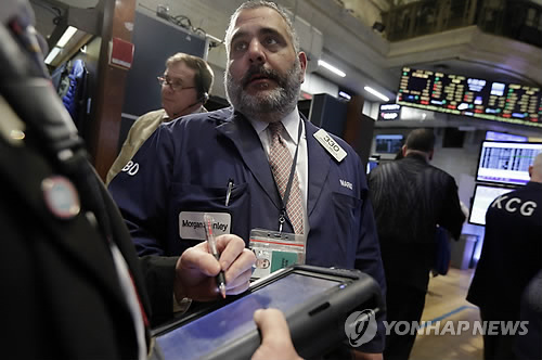 뉴욕증권거래소(NYSE)에서 다우존스 산업평균지수는 전날보다 27.55포인트(0.16%) 떨어진 17,635.39로 종료됐다.