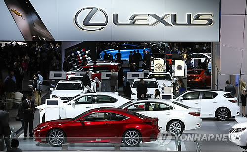 | △ (AP=연합뉴스.자료사진) 지난해 1월13일 디트로이트에서 열린 북미국제오토쇼의 렉서스 전시장. |