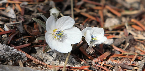 | △ 봄을 부르는 설악산 야생화 (속초=연합뉴스) 이종건 기자 = 설 이후 낮기온이 크게 오르면서 따뜻한 날씨가 이어지는 가운데 23일 꽃망울을 터뜨린 설악산국립공원의 변산바람꽃이 봄을 부르고 있다. 1993년 변산반도에서 처음 채집되면서 학술적으로 알려지기 시작한 변산바람꽃은 변산반도를 비롯해 마이산과 지리산, 한라산, 설악산 등에 분포하는 한국특산종이다. 2015.2.23 momo@yna.co.kr |
