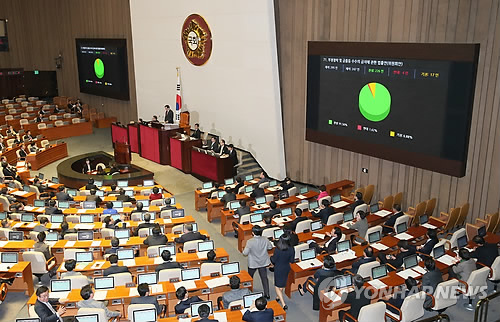 | △ 지난 3일 국회 본회의에서 '김영란법'으로 불리는 부정청탁·금품수수금지법 제정안이 통과되고 있다. 제정안은 재석 의원 247명 가운데 찬성 226명, 반대 4명, 기권 17명으로 가결됐다. |