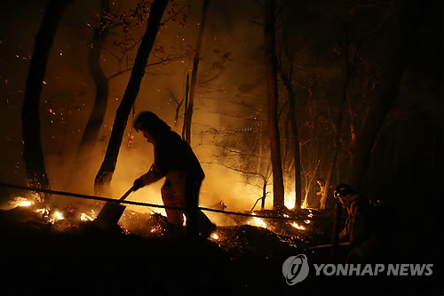임야 1만5천㎡ 소실·인명피해 없어…밤이라 헬기 못 뜨고 강풍에 진화 애먹어