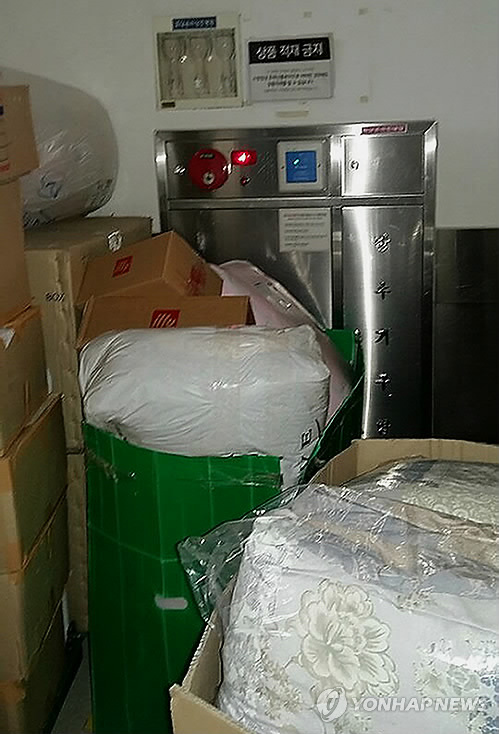 이 백화점의 옥내 소화전 위에는 '상품을 적재하지 않아야 한다'는 안내판이 부착돼 있지만, 소화전을 열 수 없을 정도로 물건이 쌓여 있다.