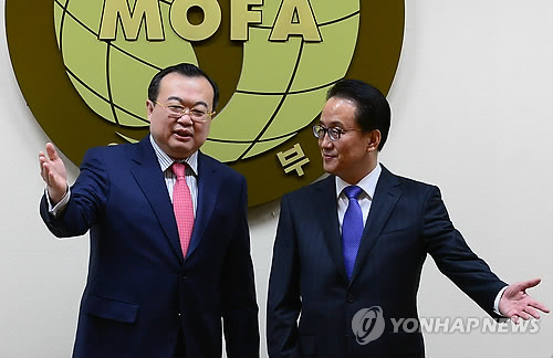 | △ 한중 외교차관보 협의 (서울=연합뉴스) 전수영 기자 = 이경수 외교부 차관보와 류젠차오(劉建超) 중국 외교부 부장조리(차관보급)가 16일 오전 서울 도렴동 외교부 청사에서 포즈를 취한뒤 자리로 향하고 있다. |