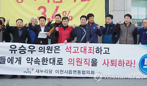 새누리당 이천시당원協, 유승우 국회의원 사퇴 촉구