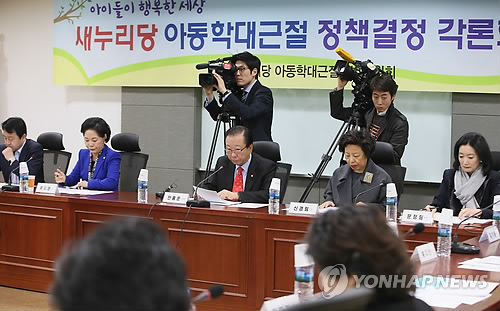 (서울=연합뉴스) 홍정규 기자 = 정부와 새누리당 아동학대근절특별위원회는 17일 회의를 열고 2월 임시국회에서 부결된 영유아보육법 개정안과 관련, 어린이집 폐쇄회로(CC)TV에 사생활 보호 조건을 달아 4월 임시국회에서 재추진하기로 했다.