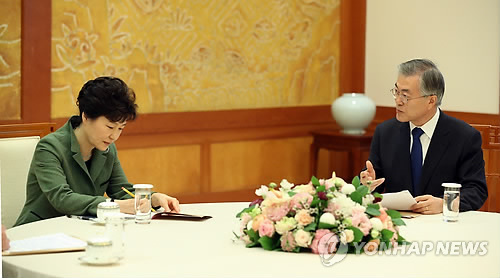 | △ 발언하는 문재인, 메모하는 박근혜 (서울=연합뉴스) 도광환 기자 = 17일 오후 청와대에서 열린 여야대표 회동에서 새정치민주연합 문재인 대표가 발언하자 박근혜 대통령이 메모하고 있다. |