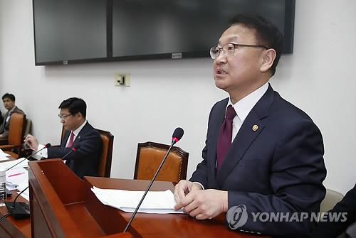 | △ 인사말 하는 유일호 장관 (서울=연합뉴스) 이상학 기자 = 유일호 국토교통부 장관이 17일 오후 국회에서 열린 서민주거복지 특별위원회 전체회의에서 인사말을 하고 있다. 2015.3.17 leesh@yna.co.kr |