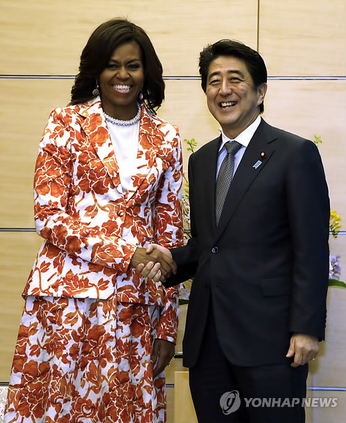 (도쿄=연합뉴스) 조준형 특파원 = 아베 신조(安倍晋三) 일본 총리 내외가 미국 퍼스트레이디인 미셸 오바마 여사를 상대로 내달 워싱턴에서 열리는 미일 정상회담의 '사전 정지작업'을 했다.