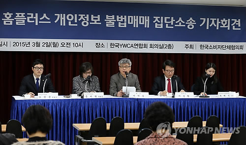 | △ 한국소비자단체협의회 관계자들이 지난 2일 서울 명동 YWCA회관에서 홈플러스 개인정보 불법매매 집단소송 기자회견을 열고 대응방안 및 소송지원과 계획을 밝히고 있다. |