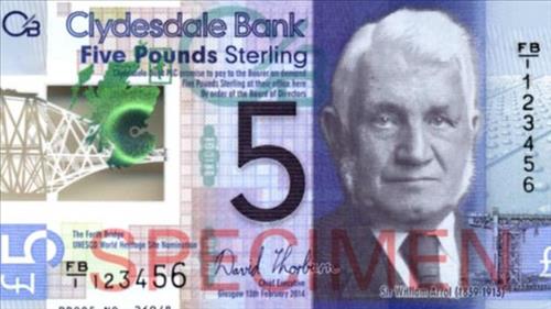 스코틀랜드의 클라이스데일은행(Clydesdale Bank)이 5파운드 짜리 플라스틱 화폐 200만 개를 발행했다고 BBC방송 등 영국 언론들이 23일(현지시간) 전했다.