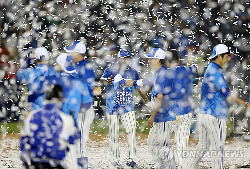 | △ 지난해 11월 서울 잠실구장에서 한국시리즈 우승을 확정한 삼성 라이온즈(연합뉴스 DB) |