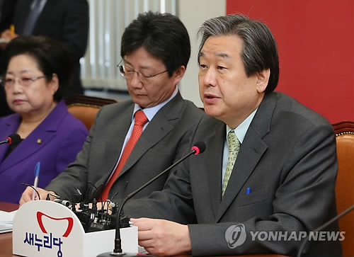 김 대표는 "국민의 75%가 (공무원연금 개혁을) 이해하고 지지하는데 수권하겠다는 정당서 당당히 자기 안(案)을 내놓지 않고 공무원노조와 국민 사이에서 눈치보기로 일관하는 것은 정말 옳지 않은 일"이라며 새정치민주연합을 비판했다.