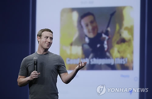 | △ 마크 저커버그 페이스북 최고경영자(CEO)는 25일(현지시간) 미국 샌프란시스코에서 'F8 2015' 개발자 회의 개막 기조연설을 하고 있다. (AP=연합뉴스) |