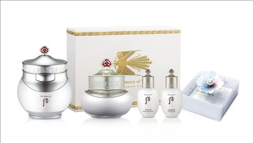 세트에는 20㎖ 용량의 '후 미백 수분광 크림'도 들어 있으며, 미백 수액(20㎖)과 유액(20㎖)도 증정한다.