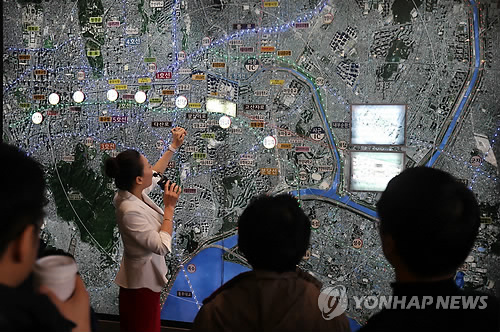 | △ 지난달 22일 서울 왕십리뉴타운 센트레빌 모델하우스에서 주택구입예정자들이 단지배치를 살펴보고 있다. |