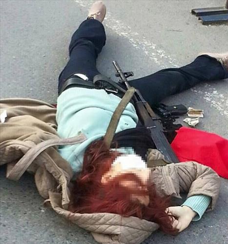 트위터를 통해 공개된 사진에는 소총과 권총으로 무장한 여성이 청사 앞 도로에 숨진 채 쓰러져 있는 장면이 찍혔다.