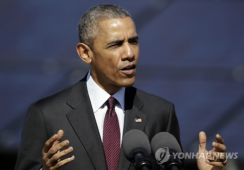 | △ (epa=연합뉴스) 버락 오바마 대통령이 3일(현지시간) 미국 유타주 힐 공군기지에서 대체 에너지 관련 연설을 하고 있다. |