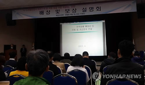 | △ 세월호 배상·보상 현장설명회 (인천=연합뉴스) 강종구 기자 = 세월호 배상·보상 현장설명회가 5일 인천시청 대회의실에서 열리고 있다. 2015.4.5 inyon@yna.co.kr |