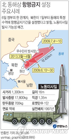 북한이 이번에 동해상에 항행금지구역을 설정한 것은 탄도미사일을 발사할 때주변국의 비난을 의식한 조치로 분석되고 있다.