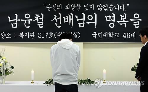 6일 국민대에 따르면 이 학교는 남 교사의 희생정신과 제자 사랑을 기리고자 문과대학 영어영문학과 학생들이 수업을 듣는 북악관의 한 강의실을 '남윤철 강의실'로 지정하고 이달 8일 명명식을 연다.