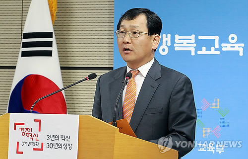 | △ 일본 교과서 입장 발표하는 교육부 (서울=연합뉴스) 김재금 교육부 대변인이 6일 오후 세종시 정부세종청사 교육부 브리핑룸에서 일본 중학교 교과서 검정결과에 대한 교육부 입장발표를 하고 있다. (교육부 제공) |