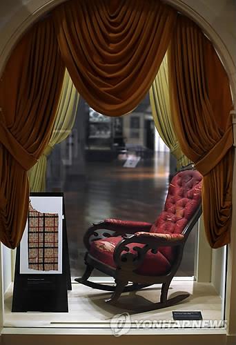 (디어본<美미시간주> AP=연합뉴스) 에이브러햄 링컨 전 미국 대통령이 암살당할때앉았던 포드 극장의 의자가 암살 150주년을 맞아 15일(현지시간) 열린 공간에서 일반에 공개된다.