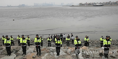 | △ (시흥=연합뉴스) 신영근 기자 = 지난 5일 토막 시신이 발견된 경기도 시흥 시화방조제에서 7일 오전 토막시신의 다른 부분으로 추정되는 시신이 발견돼 경찰 관계자들이 수습과 함께 조사를 벌이고 있다. 2015.4.7 drops@yna.co.kr |