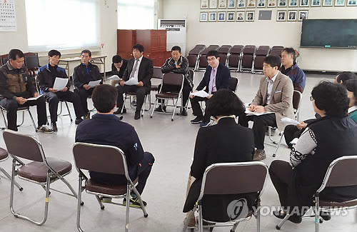 | △ 옥천 미선나무 자생지 보존방안 토론 (옥천=연합뉴스) 박병기 기자 = 충북 옥천군 군서면 재건산 기슭 미선나무 자생지의 천연기념물 지정 등 보전대책을 논의하는 공청회가 9일 군서면사무소에서 열리고 있다.2015.4.9 bgipark@yna.co.kr |