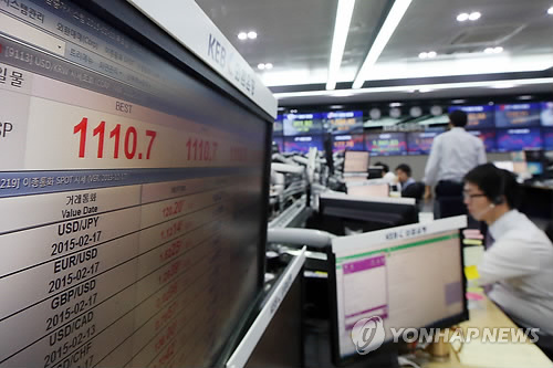 | △ 원·달러 환율이 표시되고 있는 외환은행 딜링룸 모니터 (연합뉴스 자료사진) |