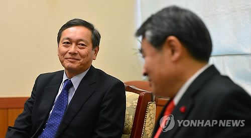 | △ 조태용 외교부 1차관과 사이키 아키타카(齋木昭隆) 일본 외무성 사무차관(연합뉴스 자료사진) |