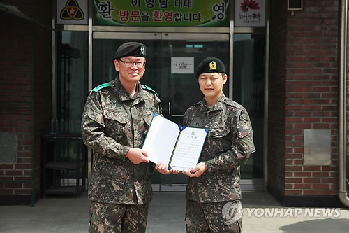 | △ 전역 앞둔 육군병장, 아껴 모은 400만원 기부 (서울=연합뉴스) 전역을 앞둔 육군병장이 군 복무를 하면서 모아온 400만원을 형편이 어려운 전우에게 기부해 잔잔한 감동을 주고 있다. 육군 35사단 전주시 덕진구 지역대에서 상근예비역으로 근무하는 김륜확(32) 병장이 그 주인공이다. 2015.4.12 << 육군제공 >> photo@yna.co.kr |
