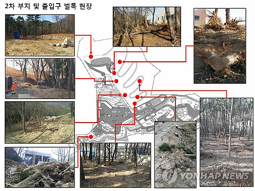 환경운동연합은 이곳 외에도 2차 부지 내 7∼8곳에서 적게는 수백 그루, 많게는 수천 그루가 잘려나갔다고 주장했다.
